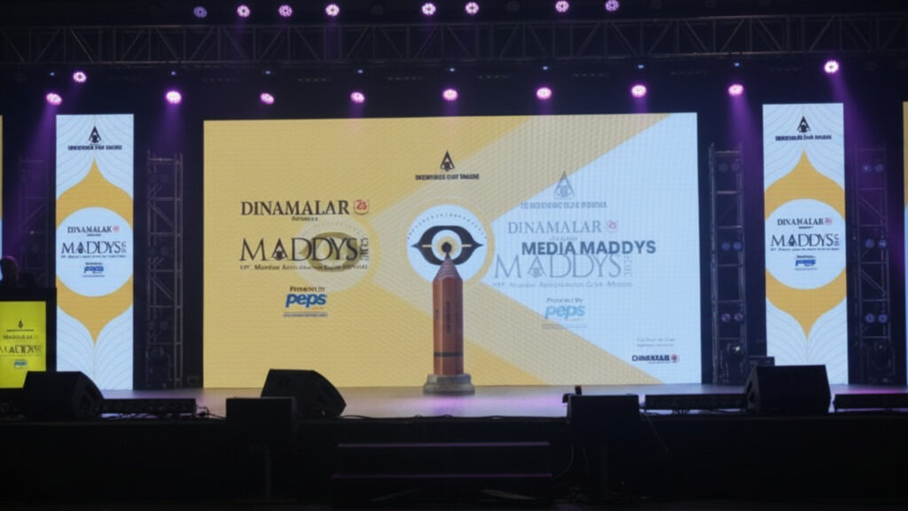 The event was hosted at Feathers – A Radha Hotel, Chennai, a venue that perfectly blended elegance with world-class facilities. From the grand entrance to the immersive stage setup, every detail reflected the stature of the MADDYS.